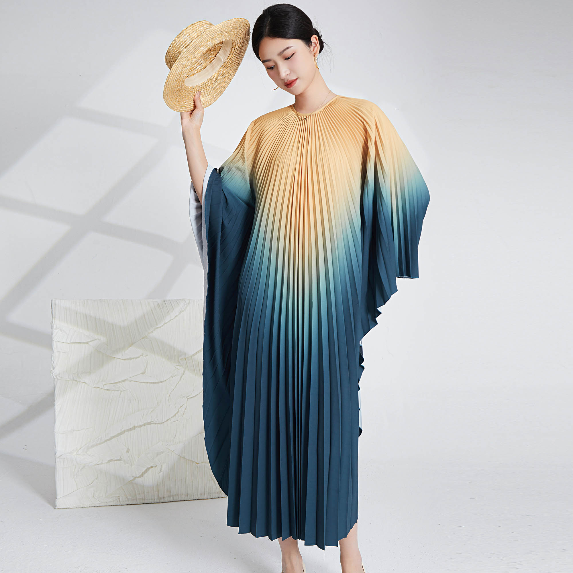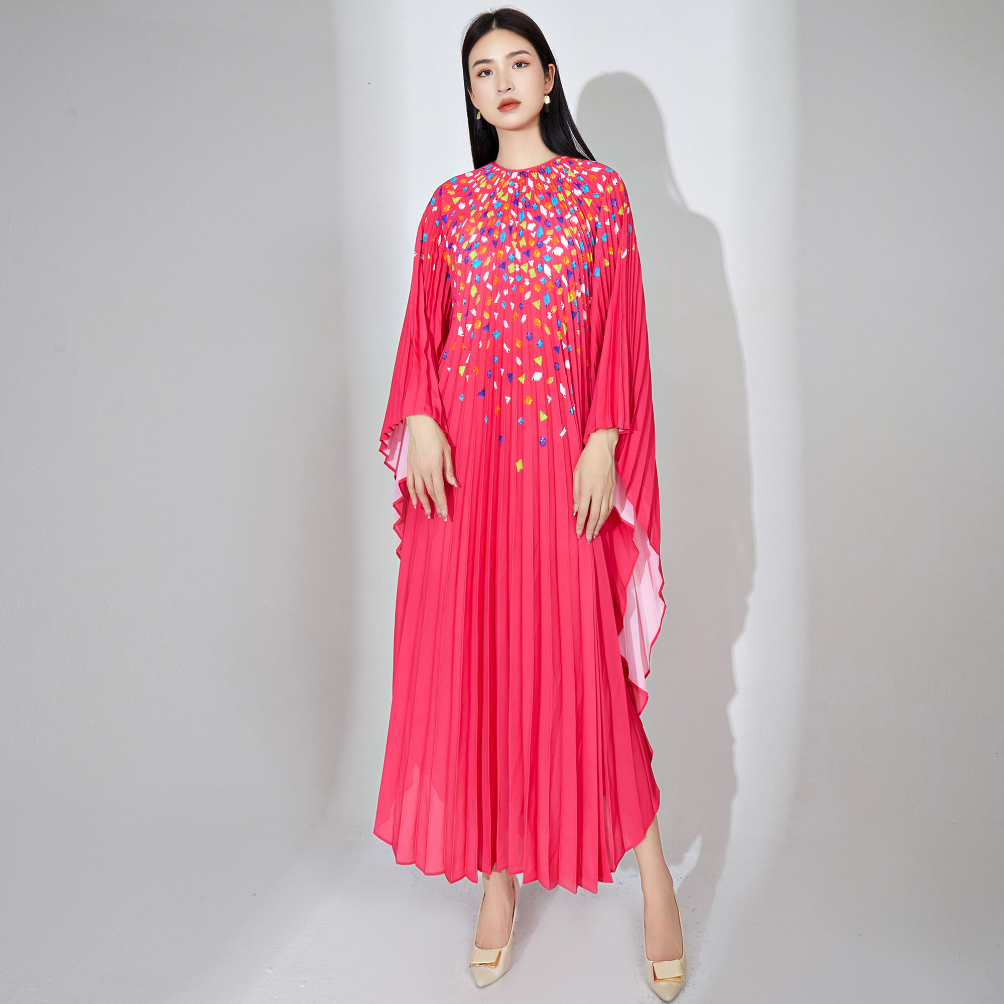 Pleated Dresses" are garments characterized by the incorporation of pleats, which are folds or creases formed by doubling fabric back upon itself and securing it in place. Pleated dresses can have various styles, lengths, and designs, making them versatile and suitable for different occasions. The pleats add texture, movement, and a touch of elegance to the dress, creating a timeless and chic look. Whether in casual, formal, or evening wear, pleated dresses are celebrated for their ability to combine fashion and sophistication.